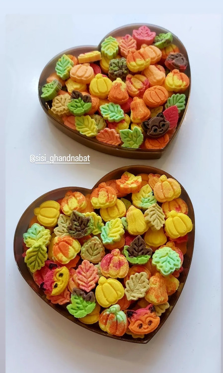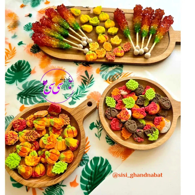 قند تم پاییزه با طرح های کدو کشیده کدو توپول برگ در سه طرح روباه و بلوط با طعم پرتقال و لیمو