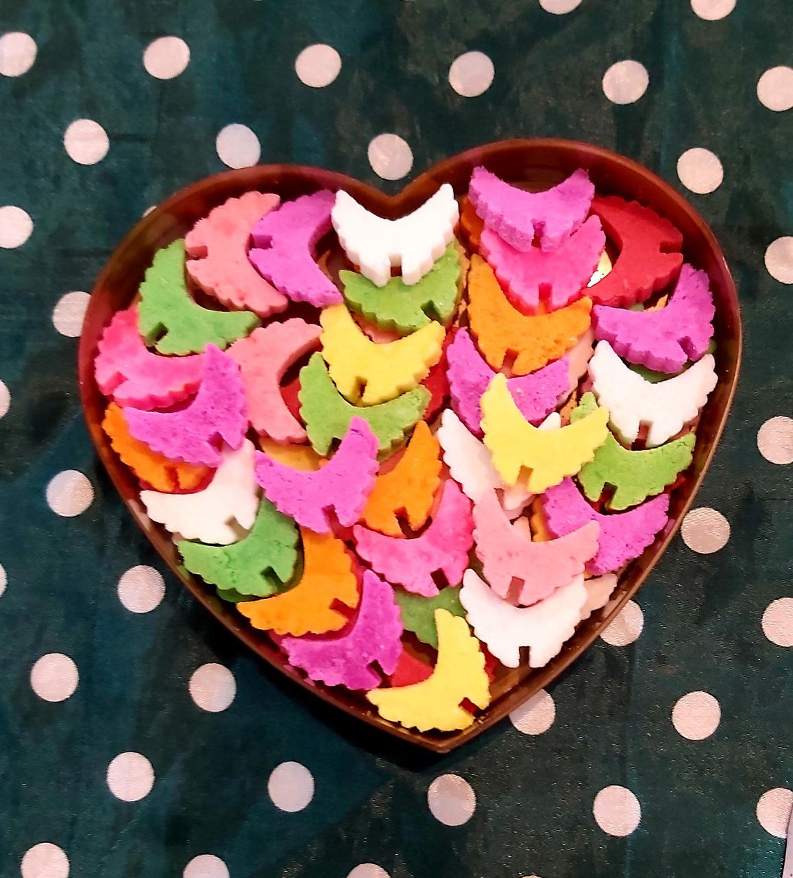 قند رنگی فانتزی تزیینی لبه فنجونی طرح قلب و بال فرشته میوه ای ۲۲۰گرمی